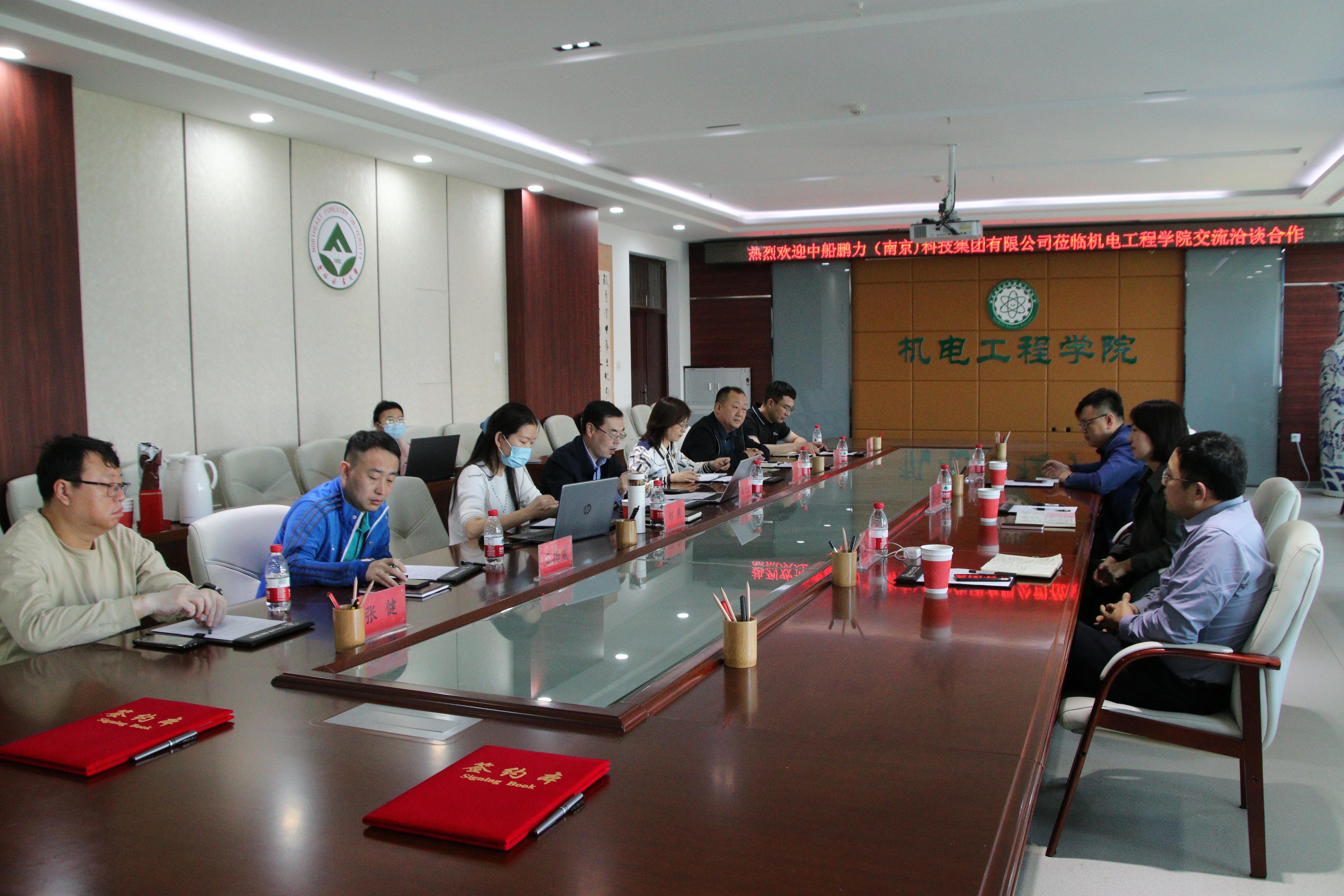 2023年5月23日上午9点,中船鹏力(南京)科技集团人力总监谈仁梅、装备公司总经理王军、招聘经理董方超莅临15vip太阳集团进行交流与合作洽谈。公司经理刘九庆、副经理李耀翔、党委副书记郑燕、机械工程专业硕士学科带头人孟兆新、机器人专业主任王扬威及教师解志杰、张健出席会议。