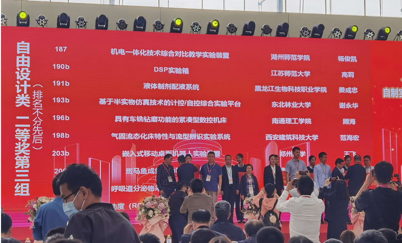 自制实验教学仪器设备创新大赛是全国性比赛,旨在提高教师在人才培养中的教学与研究能力,推动高校实验教学方法、教学手段的改革与创新。本届大赛获得全国各地高校的广泛关注,140余所学校近千件作品参加初赛,350余件优秀作品进入决赛,最终评选出一等奖13项,二等奖40项,三等奖若干。