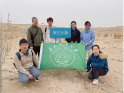 4月20日上午,团队成员在专家陪同下前往公司的试验基地。该试验基地位于沙漠边缘,也是全国荒漠化防治(机械治沙工程)试验示范基地。在试验基地,团队观看了就地取材建设的多种草方格实验场地,认真听取试验基地专家关于各种草方格建设与固沙效果的经验讲解。针对机械化固沙草方格技术与实施工程方面,团队与专家们在沙漠现场进行了广泛和深入交流。